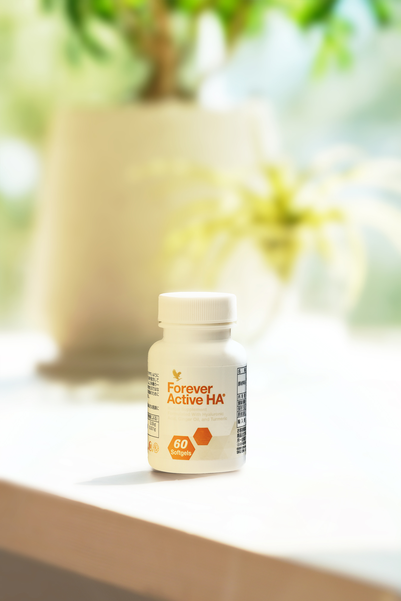 フォーエバー アクティブ HAは、吸収されやすいように低分子化されたヒアルロン酸とウコン、生姜油を配合した健康食品です。ヒアルロン酸は身体の中に存在するムコ多糖の一種で、加齢とともに減少していきます。普段の食生活ではなかなか補給しにくいヒアルロン酸を美容と健康の ためにフォーエバー アクティブ HAで補ってください。